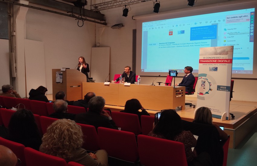 L’intervento successivo è stato di Maria Letizia Casani, direttore generale dell’AUSL Toscana nord ovest. “La transizione al digitale richiede un intervento di sistema – ha detto Casani- e con questo congresso vogliamo raccontare quello che abbiamo fatto e quello che ci apprestiamo a fare nei prossimi anni. Vogliamo illustrare la nostra strategia di transizione al digitale, offrire spunti, suggerimenti e spazi di riflessione per dotare la sanità di strumenti al passo con i tempi”.