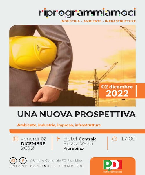 PD Piombino: “Riprogrammiamoci” venerdì 2 dicembre l’incontro “Una nuova prospettiva. ambiente, industria, impresa, infrastrutture”