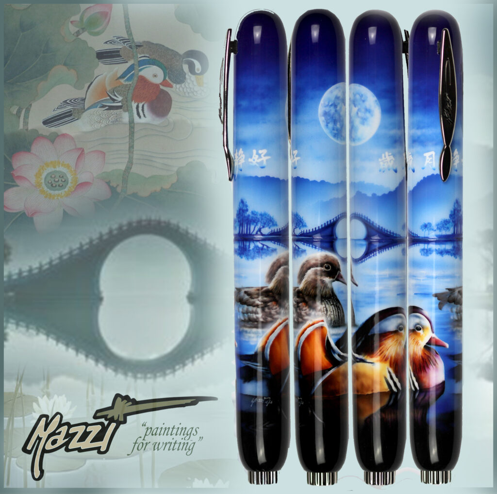 “Le eccezioni sono sempre più rare, il lavoro su Zippo assorbe la gran parte del mio tempo, ma ho vissuto esperienze indimenticabili lavorando in Arabia Saudita. Qui ho clienti che mi chiedono articoli tra i più disparati: per loro ho dipinto e dipingo penne stilografiche, coltelli da collezione, accendini Cartier, piccole sculture ed altri articoli di arredamento. In questi casi mi vengono spesso richiesti dipinti con tematiche “arabeggianti”: la falconeria praticata nel deserto, i famosi cavalli arabi, Mecca e Medina, incorniciati da intricati motivi grafici caratteristici di questa cultura. Le penne, in particolare, sono fra gli articoli che più ho dipinto in miniatura; ho aerografato per 18 anni per la Visconti, che produce meravigliose penne da collezione; ho realizzato alcuni di questi lavori per re e capi di stato, da Carlo d’Inghilterra a Filippo di Belgio, dal re d’Arabia alla famiglia reale olandese ed a numerosi altri presidenti e principi. Oggi aldilà degli accendini lavoro prevalentemente su penne. Dopo avere collaborato per 20 anni con Visconti di Firenze oggi ho il piacere e l’onore di lanciare sul mercato la mia penna, la “Mazzi pen” creata da Dante del Vecchio, fondatore della Visconti. Questa stilografica di grandi dimensioni è stata concepita per essere dipinta, non presenta quindi interruzioni tra fusto e cappuccio e la chiusura magnetica permette al dipinto di ricollegarsi rapidamente una volta rimesso il cappuccio”.