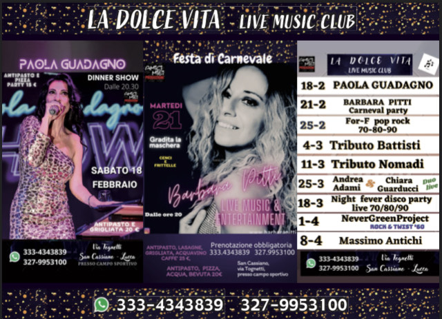Si comincerà sabato 18 con la showgirl Paola Guadagno e si replicherà il martedì grasso 21 febbraio con il veglione mascherato dalle ore 20 in compagnia di Barbara Pitti.