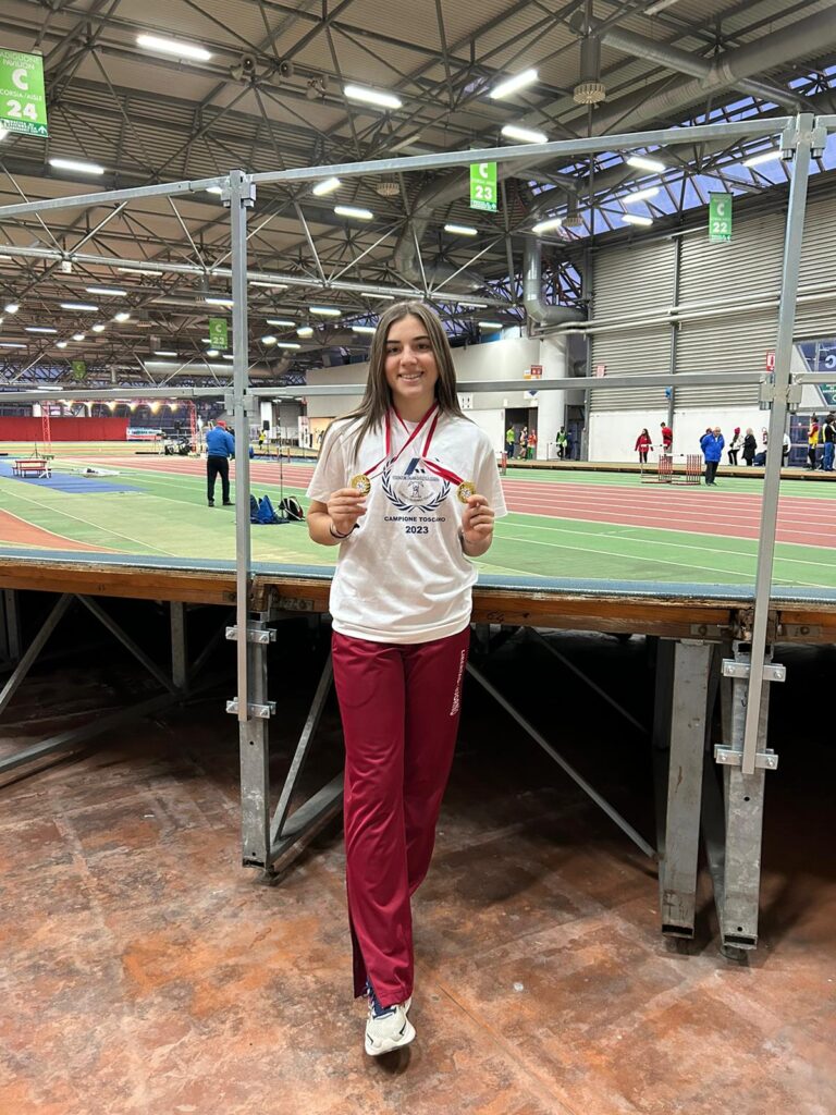 A Carrara grande prova nello sprint per la saltatrice Michela Barotti che conquista il titolo toscano assoluto nei 50m. Per lei primato personale già in batteria con 6″74, tempo che migliora ancora in finale fino a 6″70, crono che le vale il record societario assoluto. Nella stessa sede titolo toscano assoluto anche per Greta Pistolozzi nel lancio del peso, che riesca a scagliare fino a 12,30m.