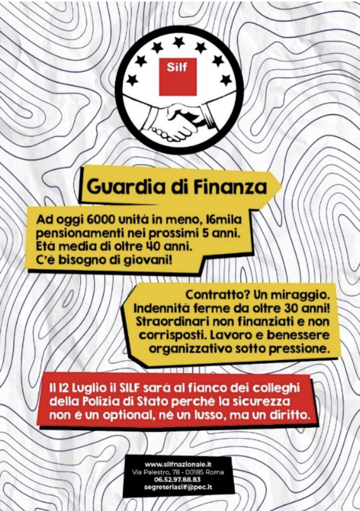 Francesco De Luca, segretario generale regionale del Sindacato Italiano Lavoratori Finanzieri, interviene allamanifestazione organizzata dal sindacato di polizia SILP CGIL per denunciare il dramma del comparto delle Forze di Polizia sempre più abbandonato a se stesso. “Il personale del comparto sicurezza ha il contratto scaduto da 557 giorni. Anche per le donne e gli uomini della Guardia di Finanza la situazione è la medesima, non sono previste assunzioni straordinarie di personale per compensare i pensionamenti, gli aumenti stipendiali sono fermi al 2021 e vi è scarsa attenzione per le condizioni di lavoro e il benessere organizzativo, come dimostra anche l’esplosione del fenomeno suicidario: 29 casi dall’inizio dell’anno tra tutti i Corpi in divisa, un numero certamente sottostimato per quel che riguarda i militari. Dal governo le risposte non arrivano. Oggi il SILF è a fianco dei colleghi della Polizia di Stato per ribadire che la sicurezza non è un optional, né un lusso, ma un diritto. Nella busta paga di luglio c’è una surroga del mancato rinnovo del contratto scaduto a dicembre 2021 che sommata all’indennità di vacanza contrattuale prevede un incremento dello stipendio tabellare pari al 2,1% quando l’inflazione nel 2023 è sopra al 10%. Una vergogna”.