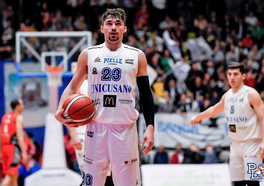 Nell’ultima stagione, coach Cardani, che lo aveva allenato già a Bernareggio, lo chiama a far parte di un ambiziosa Pielle. Coi labronici, con 20’ a disposizione, sfiora la doppia cifra, con 9,9 punti, tirando col 48% da due, 32% da tre e 69% dalla lunetta e viene votato come MVP del mese di novembre. Arriva così il terzo posto in campionato e ai playoff, senza l’infortunato Loschi, è libero di prendersi più iniziative e lo fa, segnando 12 punti di media, col 64% da due e col 37% da tre.