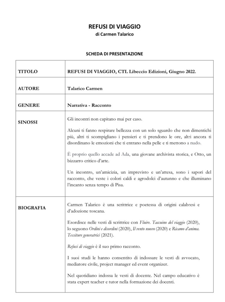Carmen Talarico, “Refusi di viaggio”