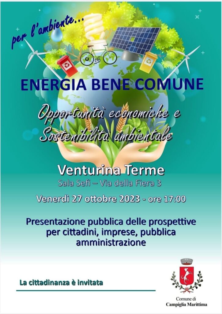Venerdì 27 ottobre alle 17.00 appuntamento a Venturina Terme, Sala SEFI centro fiere – Campiglia Marittima via della Fiera 3. Il Comune di Campiglia Marittima presenterà ai cittadini, alle imprese e alle realtà associative il proprio Piano di Transizione Ecologica.