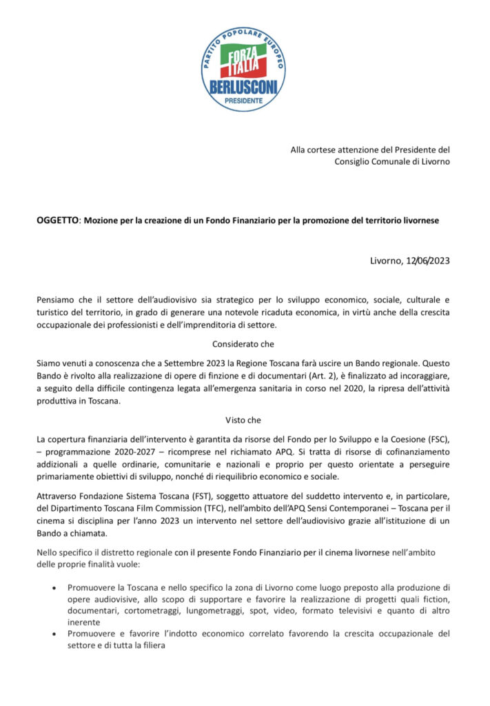 Una proposta per la nostra città: la creazione di un Fondo Finanziario per la promozione del territorio livornese. Forza Italia da giugno 2023 ha presentato la mozione che purtroppo non riusciamo a discutere nella commissione competente a causa dell’assenza continua dell’assessore di riferimento. È stata nuovamente insita in calendario delle commissioni bilancio e siamo sicuri che il 7 dicembre ore 10:30 riusciremo a presentare a tutte le forze politiche la nostra proposta.
