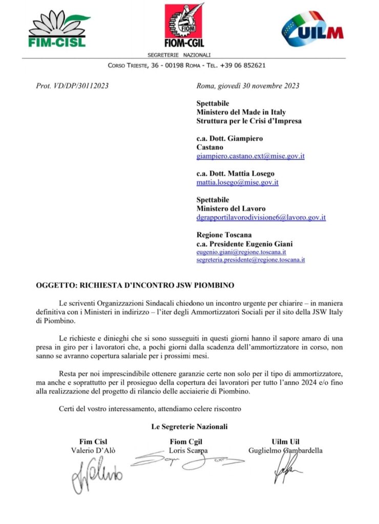 Tagged Inincontro jsw Piombino Sindacati tichiesta urgente