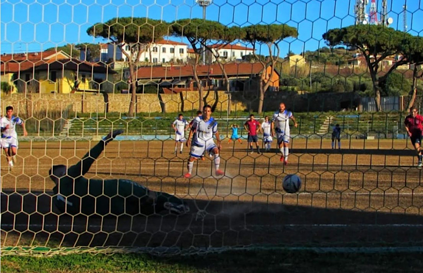 Mi son dimenticato di sincronizzare l’orologio delle emozioni su quelle del mondo, che peccato, devo provvedere in fretta, imparare a entusiasmarmi delle cose comuni, andare fiero delle cose consuete, senza originalità, ché non serve. Prima o poi imparerò a farlo, per adesso preferisco vivere la mia vita, gioire per una rete segnata al Magona, pensare che son quattro vittorie consecutive, che la zona retrocessione resta alle spalle. Emozioni da poco? Può darsi. Ma non è mica da questi particolari che si giudica un’emozione. Un’emozione è come un calcio di rigore. Unica, ma la puoi sbagliare, sempre ammesso che sia possibile fallire un’emozione. Come questo rigore nella foto di un artista che non sbaglia, immortala emozioni, piccole o grandi che siano restano tali, caro amico che ti esalti solo per cose importanti. E tu chiamale, se vuoi, emozioni, vedere due rigori al Magona – diventato terra brulla invernale – cancellare commenti che criticano le gradinate piene d’erbaccia, perché quella è la tua erbaccia, soltanto tu puoi dirlo, infine gioire come non mai perché uno di quei rigori finisce dentro. Ma immortalato resta il rigore fallito. Bello lo stesso, perché alle spalle d’una rete non segnata resta la splendida decadenza del Magona, binomio indissolubile di degrado e sogno. Non è mica da questi particolari che si giudica uno stadio. Uno stadio si giudica dal suo grande passato, dalle giornate che dentro ci hai vissuto, dal manto (un tempo) erboso calpestato, da tutte le emozioni che ti ha dato.