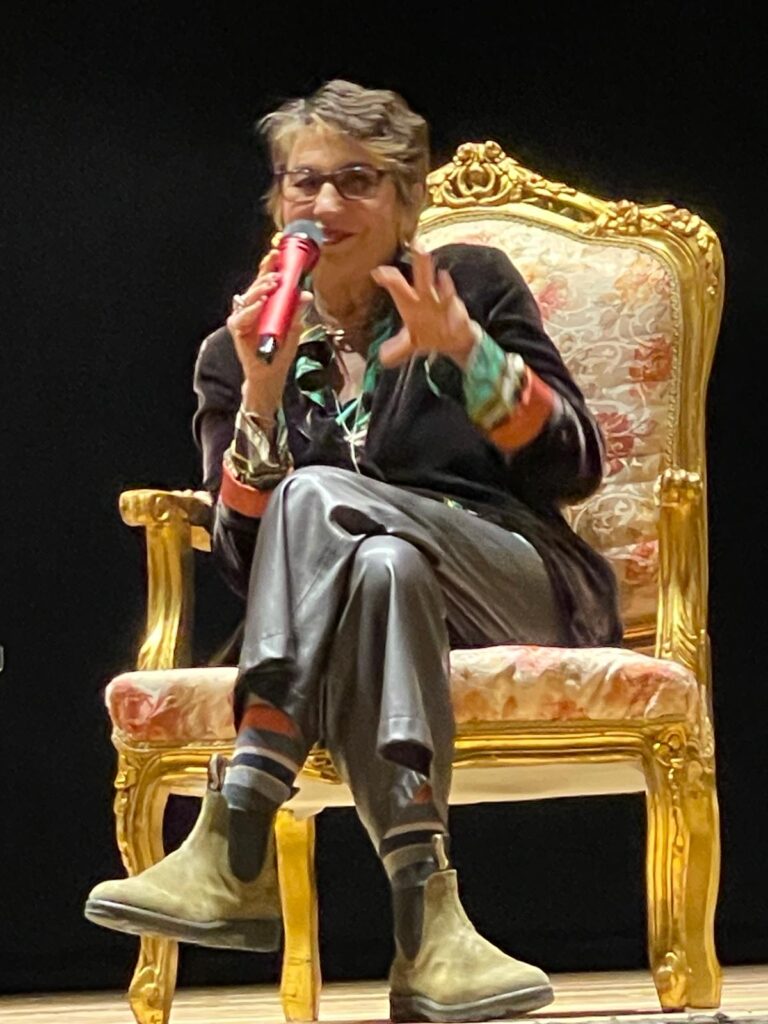 Ha introdotto la serata Rosy Di Falco, Presidente della CPO, e dopo i saluti dell’amministrazione comunale da parte dell’assessore alle Pari Opportunità Carla Bezzini e del sindaco Francesco Ferrrari, si è assistito ad un dialogo ironico ma anche profondo tra l’autrice e la Professoressa Loretta Mazzinghi, vicepresidente CPO.