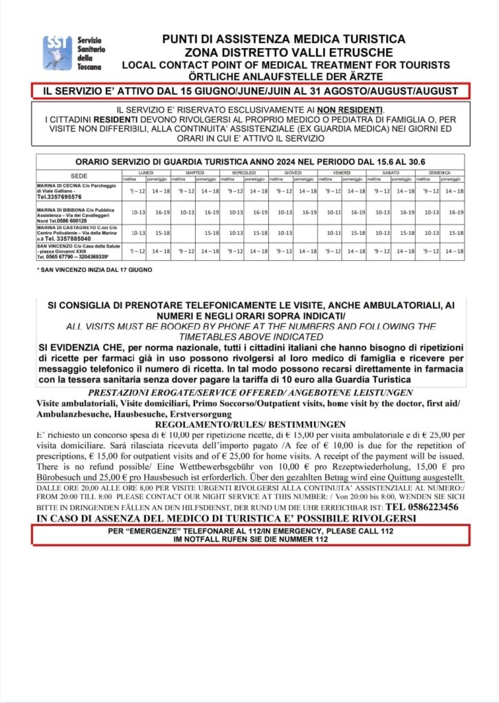“Non mi rassegno però ad un modo di fare politica che non mi è mai appartenuto – commenta Giuliano Parodi – e, anche in questa fase di ballottaggio, credo sia importante fornire agli elettori elementi pragmatici per consentire loro di fare una scelta libera e consapevole. In questo senso trovo opportuno rilevare che sabato 15 giugno, inizia il servizio di GUARDIA MEDICA TURISTICA, un servizio essenziale, rivolto esclusivamente ai turisti e, anche quest’anno, Piombino rimane priva di un punto di assistenza medica, come risulta agli atti per ora almeno finoalla fine del mese”.