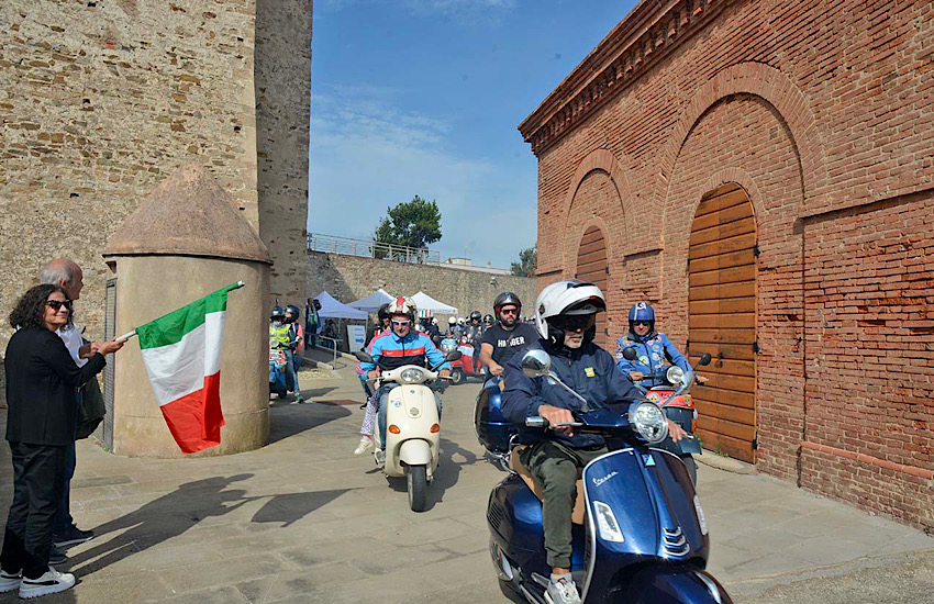 Domenica mattina ritrovo e iscrizioni presso il Castello di Piombino che faceva da cornice alle numerose Vespa giunte da Siracusa, Domodossola, Tuoro sul Trasimeno,Santo Stefano magra, Canicattì e da molti centri della Toscana, come Lastra a Signa, Pontedera, Garfagnana, San Quirico d’Orcia, Firenze. Alle 10,30 il via per gli oltre 200 vespisti, dato con tanto di bandiera tricolore dall’Assessora allo Sport del Comune di Piombino Sabrina Nigro e dal presidente del Vespa Club Italia Roberto Leardi.
