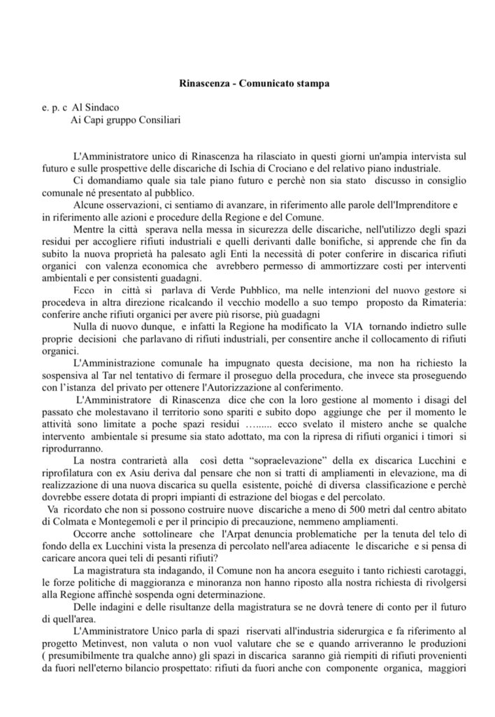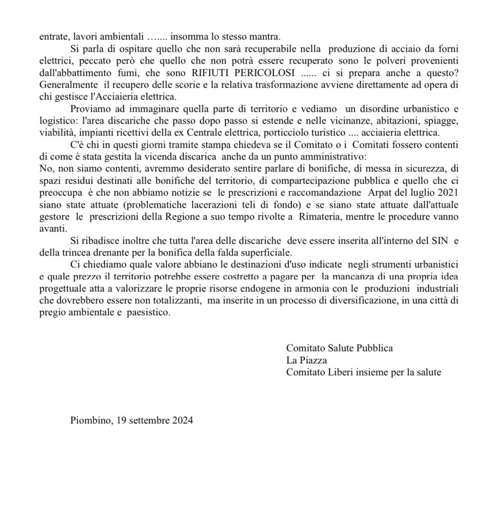 I comitati cittadini di Piombino in risposta all’amministratore delegato di Rinascenza