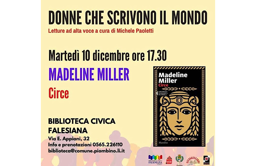 Terzo appuntamento per la rassegna Donne che scrivono il mondo, curata da Michele Paoletti in collaborazione con la Biblioteca Civica Falesiana e l’assessorato alla Cultura del Comune di Piombino. Martedì 10 dicembre alle 17.30 Paoletti propone la sua personale rilettura di Circe di Madeline Miller.