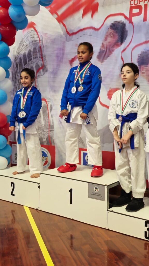 Negli U12 Flavia Sapienza nelle cinture bianche vince nel palloncino ed è seconda nel kata, nelle verdi/blu Hanae Boussairivince due argenti nel palloncino e kata e la solita Mintou Mbayevince nel kumite dopo tre incontri e nel kata, si piazza terza nel palloncino.