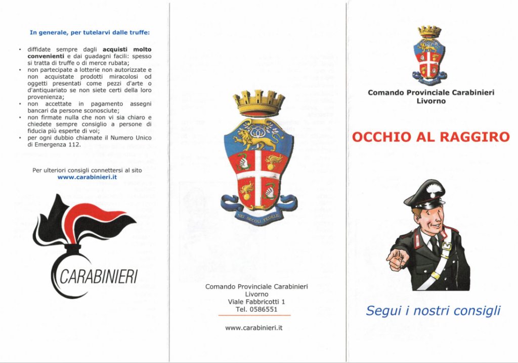 Il reiterarsi di diverse tipologie di truffa impone di richiamare gli accorgimenti e le misure che i Carabinieri di Livorno raccomandano in caso di dubbi e/o mancanza di conoscenza dell’interlocutore da cui si viene avvicinati per ogni tipo di accordo o richiesta in cui emerge la richiesta di eseguire un’operazione o un pagamento anche e soprattutto con i mezzi diversi dall’uso dei contanti in particolare l’utilizzo di strumenti di pagamento elettronici.