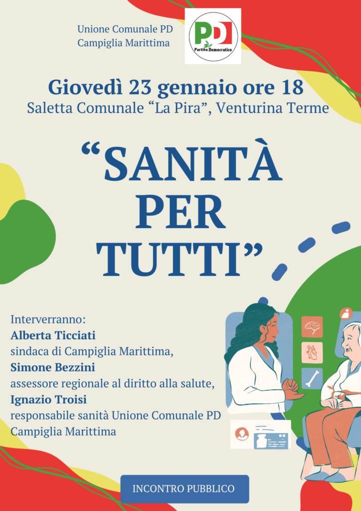 All’incontro interverranno anche la sindaca Alberta Ticciati e il responsabile del settore sanità per l’ Unione Comunale del PD di Campiglia Ignazio Troisi. Il tema del sistema sanitario regionale e del suo funzionamento saranno approfonditi trattando l’andamento dei tempi delle liste di attesa, il percorso regionale sulla digitalizzazione dei servizi di accesso, l’attivazione della centrale regionale unica NEA 116117 per la Continuità assistenziale e la sperimentazione dei punti di intervento rapido territoriali. In particolar modo, per quanto riguarda le liste d’attesa, è di pochi giorni fa la notizia dello stanziamento di un pacchetto da 10 milioni di euro che andranno a finanziare interventi sulla produttività aggiuntiva per gli operatori disponibili a un supplemento di impegno professionale, ma anche il ricorso al privato convenzionato, soprattutto per le prestazioni di diagnostica.
