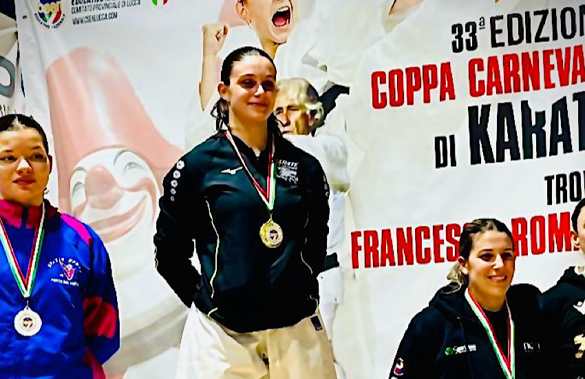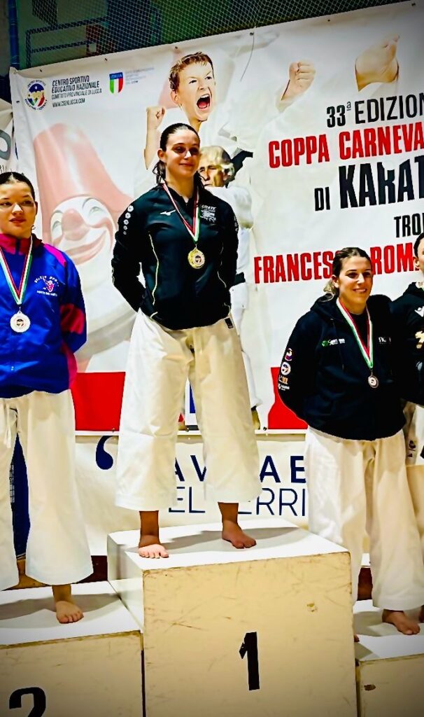 Irene Machetti giovane atleta Massetana conquista la medaglia d’oro nella specialità Kata cinture Nere Seniores manifestando nella competizione un ottimo stato di forma .