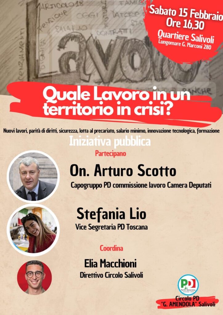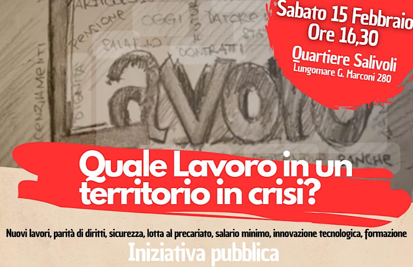 Sabato 15 Febbraio, ore 16,30 presso la sede del Quartiere Salivoli, lungomare Marconi 280 iniziativa pubblica dal tema “quale lavoro in un territorio in crisi?”