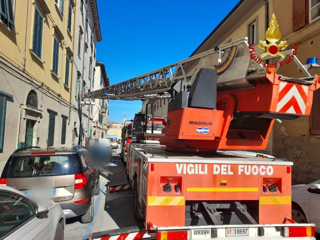 Intervento in corso dei vigili del fuoco del comando di livorno a seguito di un principio di incendio avvenuto in un appartamento in via della Maddalena a Livorno.