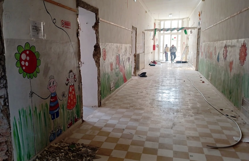 Dopo un primo sopralluogo organizzativo del 17 gennaio alla presenza della Direzione lavori e delle ditte, il cantiere è stato formalmente aperto il 10 febbraio; a oggi sono stati fatti gli interventi propedeutici ai lavori e di apprestamento del cantiere. Oltre a questo, è iniziata la rimozione degli infissi interni, della pavimentazione e degli impianti. Sono stati ispezionati i massetti e, tra le altre cose, è stato riportato alla luce l’antico impianto di areazione che si trova sotto il pavimento, e che negli anni ha contribuito a garantire la salubrità degli ambienti. Si può dunque affermare che il cantiere è pienamente operativo.