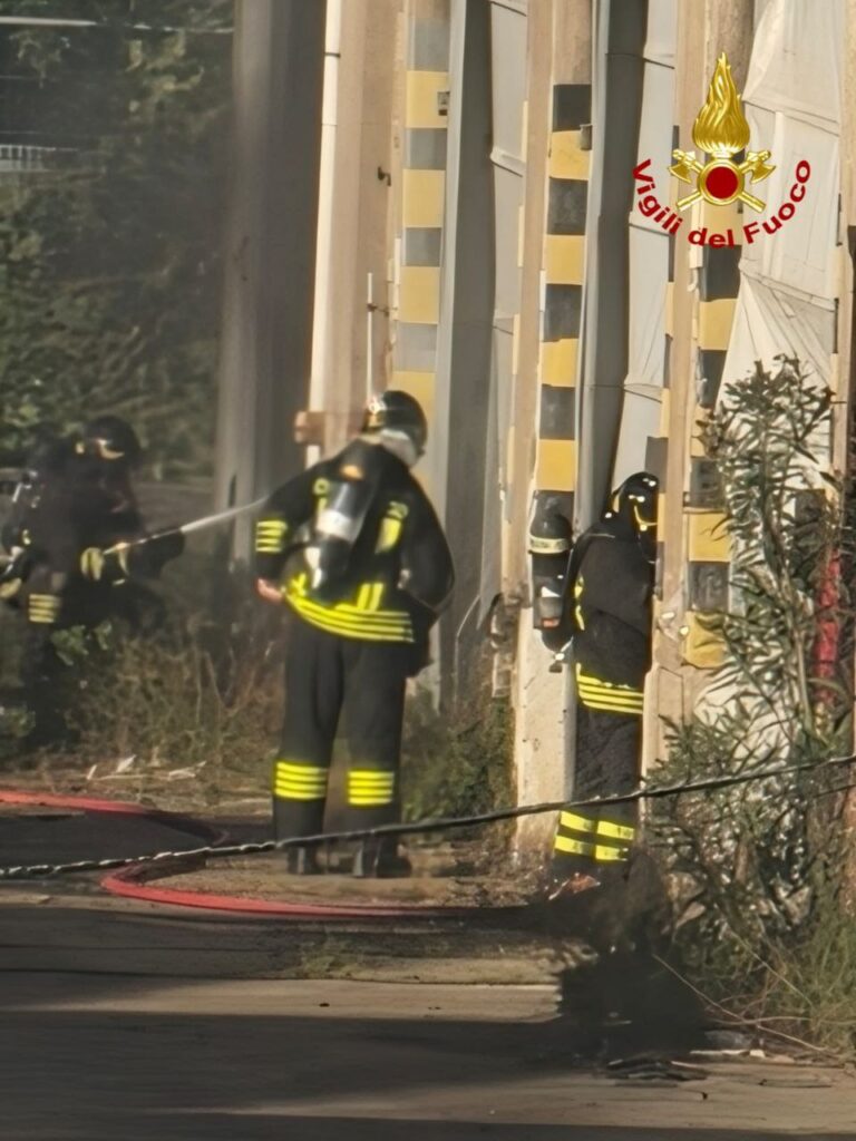 In corso un incendio presso presso delle strutture adibite a deposito delle ferrovie in via provinciale Pisana a Livorno.