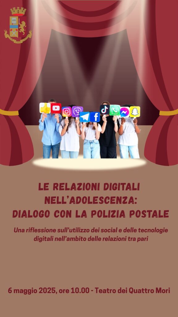 L’obiettivo dell’appuntamento, intitolato “Le relazioni digitali nell’adolescenza: dialogo con la Polizia Postale”, è stato quello di riflettere insieme sulle modalità di interazione tecnomediata tra gli adolescenti, sul rapporto tra ragazzi/e e tecnologie digitali, esplorando le opportunità e i rischi connessi all’utilizzo della rete e provando a comprendere il ruolo che le tecnologie possono avere nel rafforzare o meno gli stereotipi di genere la violenza tra pari nelle relazioni online.