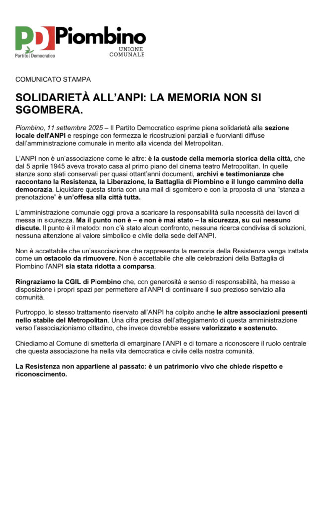 Il PD esprime piena solidarietà alla sezione locale dell’ANPI
