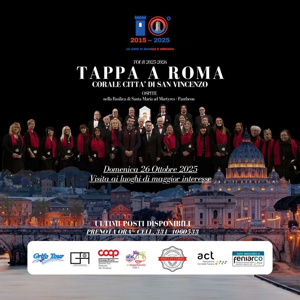 SAN VINCENZO – La Corale città di San Vincenzo sarà in trasferta in Italia con la prima tappa del tour 2025 2026 a Roma.