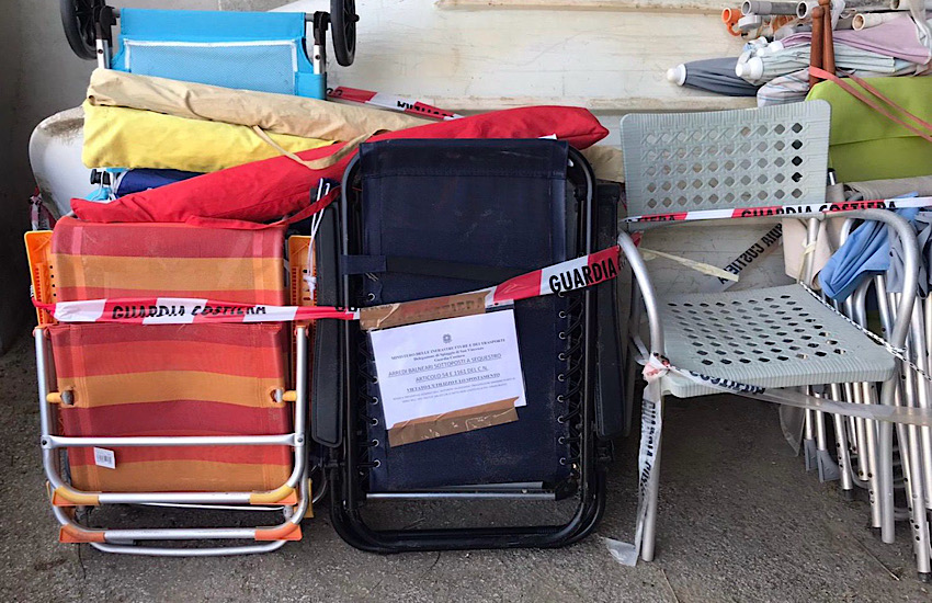 Controlli congiunti a San Vincenzo: sequestrati ombrelloni e attrezzature lasciate abusivamente sulle spiagge libere.