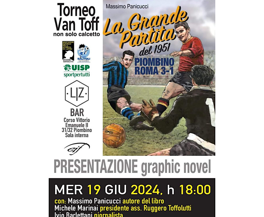 Mercoledì 19 giugno alle ore 18, presso il Liz Bar di Corso Vittorio Emanuele II , a Piombino, sarà presentato il libro a fumetti LA GRANDE PARTITA di Massimo Panicucci, […]