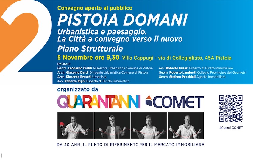 Sabato 5 novembre alle ore 9,30, presso l’HOTEL VILLA CAPPUGI DI PISTOIA, si svolgerà il secondo dei due convegni organizzati dall’AGENZIA IMMOBILIARE COMET nel contesto di promozione e valorizzazione del quarantesimo anno di attività